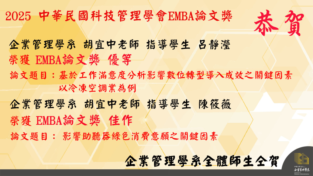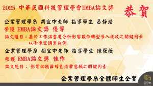 中華民國科技管理學會2025年EMBA論文獎