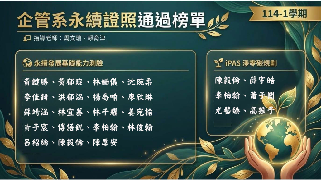 企管系永續證照通過榜單 2025年12月16日/通過: 賴志瑋 https://ba.cycu.edu.tw/wp-content/uploads/2020/03/CYBA-logo-png-300x135.png 0 0 賴志瑋 https://ba.cycu.edu.tw/wp-content/uploads/2020/03/CYBA-logo-png-300x135.png 賴志瑋2025-12-16 16:47:572025-12-16 16:48:20企管系永續證照通過榜單