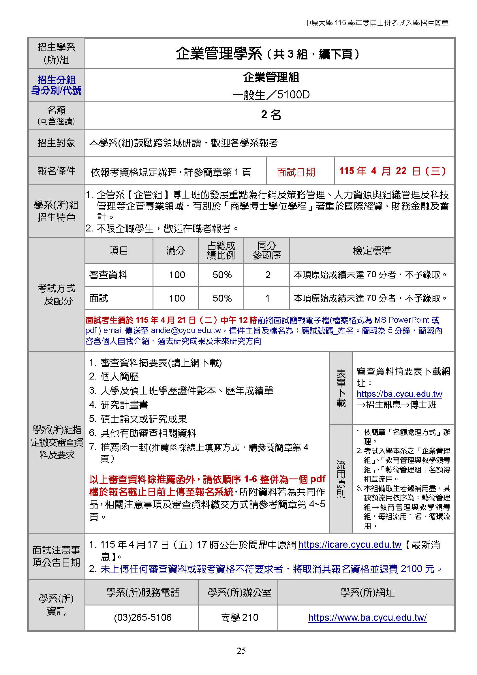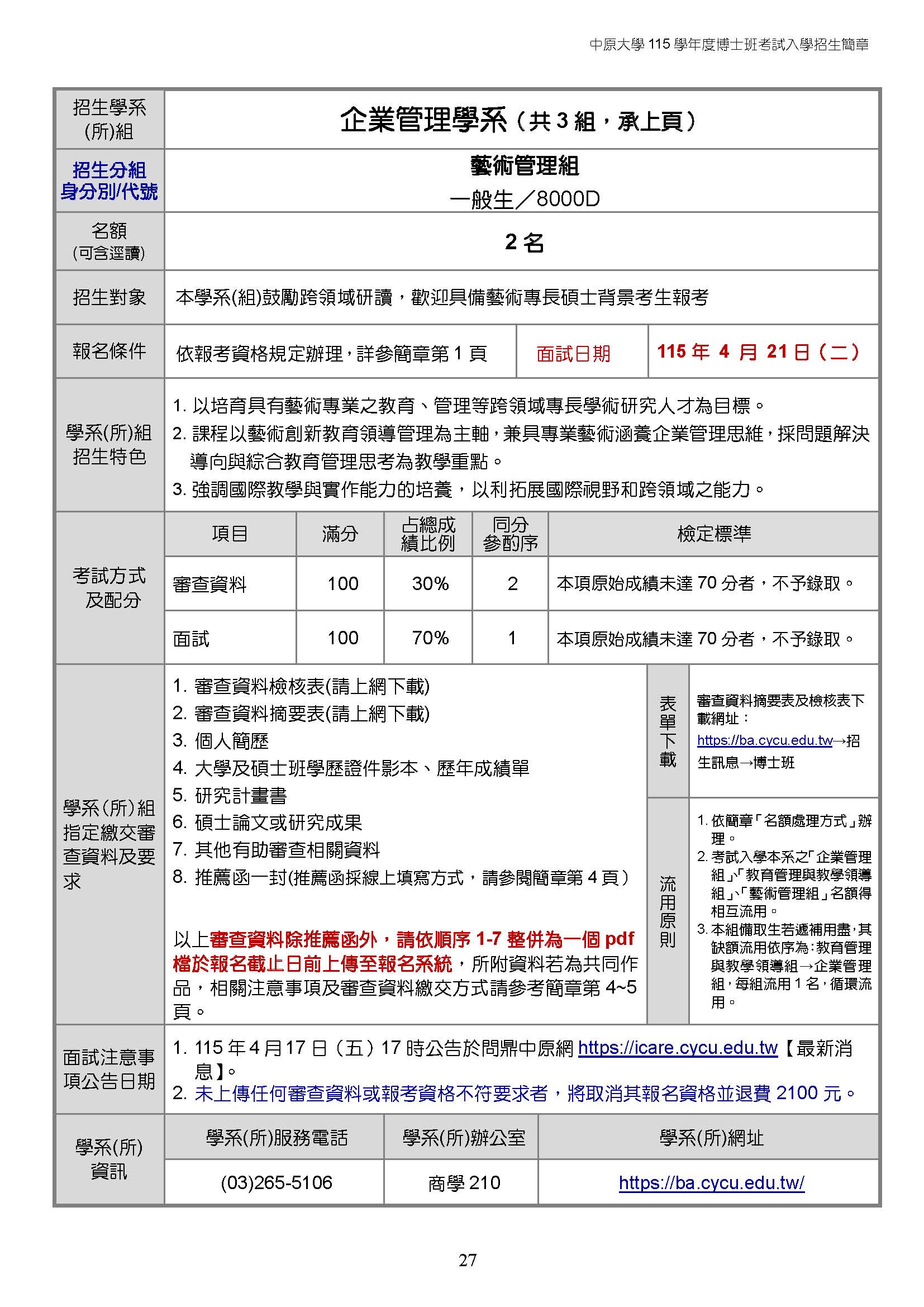 【115學年度】企管系博士班考試入學