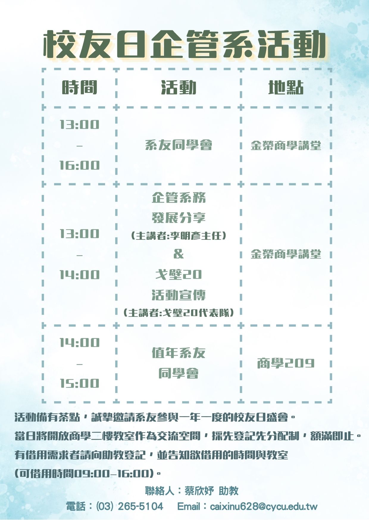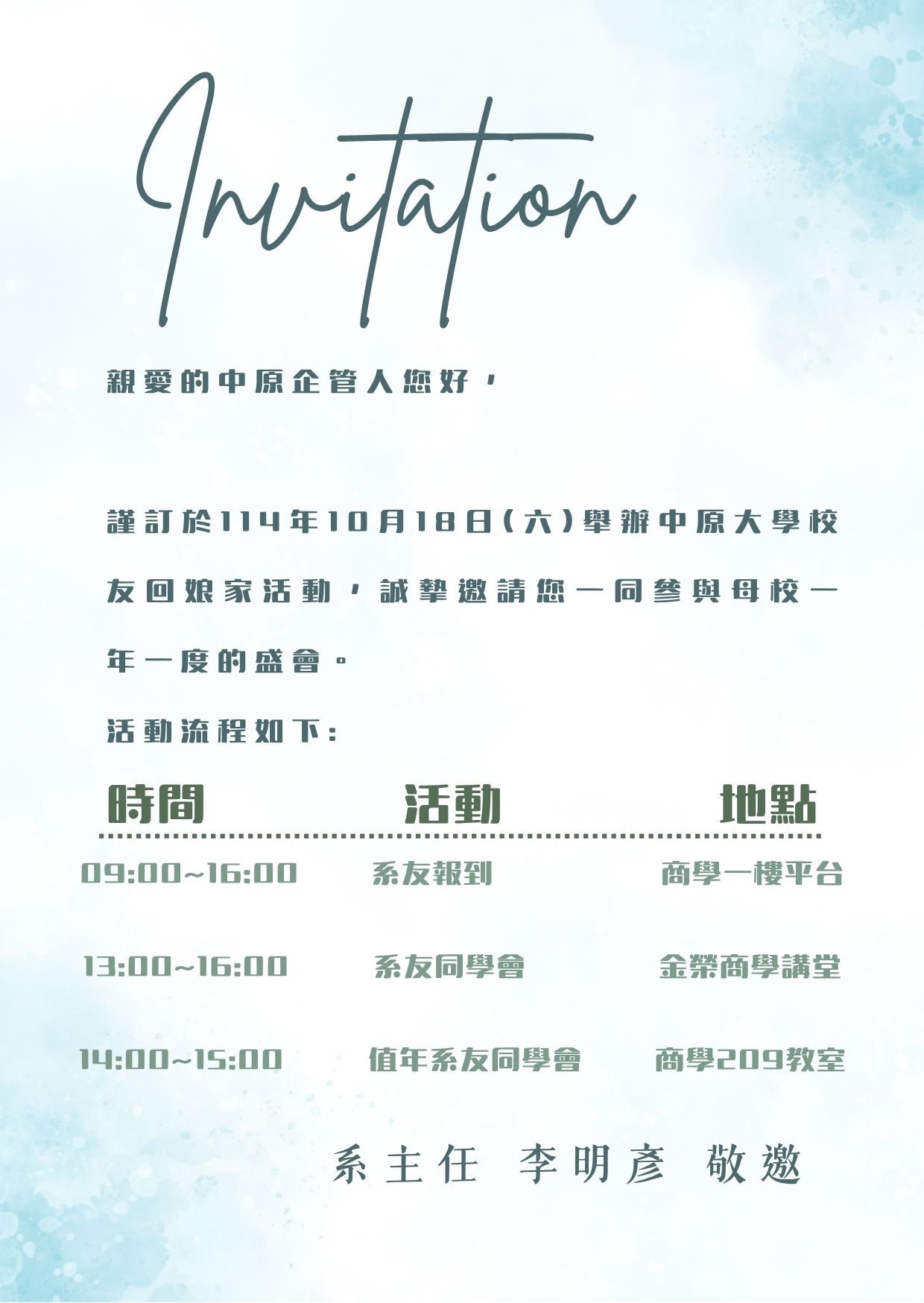 賴志瑋2025-09-25 09:19:502025-10-03 15:15:55中原大學70周年校慶~歡迎~企管系校友回娘家